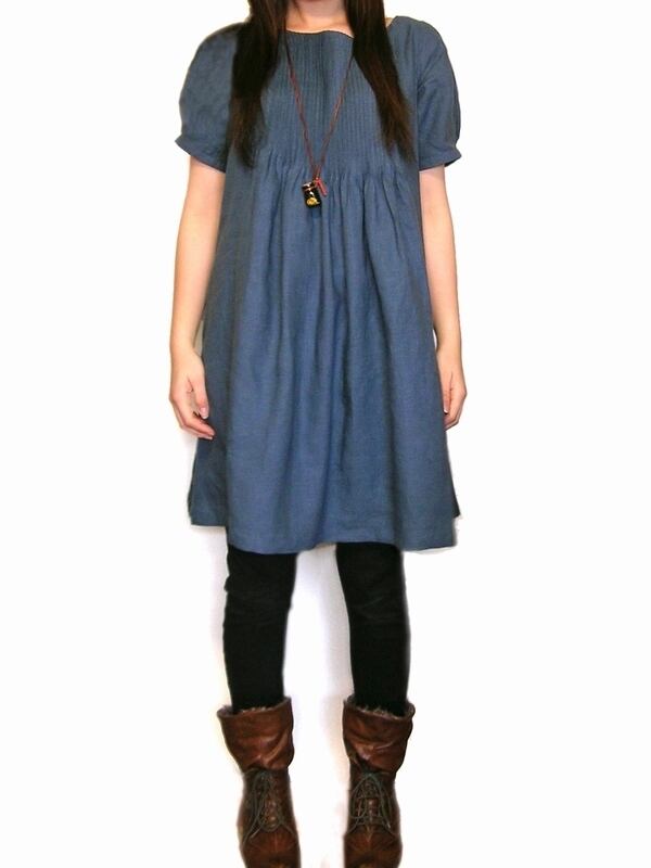 胸元にたっぷり施されたピンタックと、そこから裾に向かって自然に広がるシルエットがポイントです。