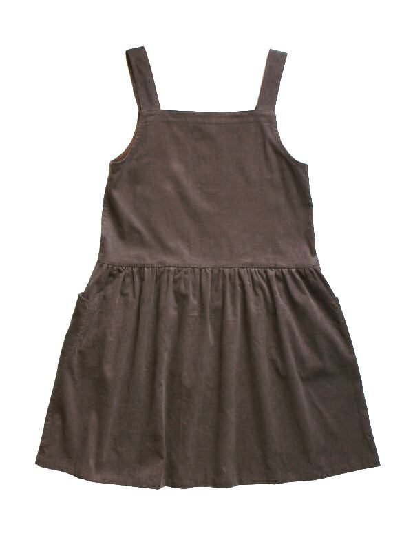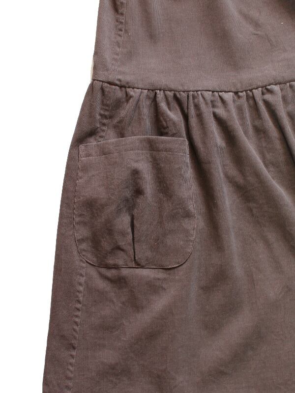 コットン コーデュロイ エプロン風ワンピース こげ茶