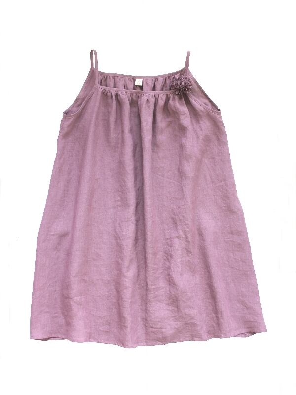 天日干しリネンならではの味わいのある色やシワ感が素敵なキャミソールドレス。