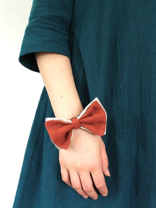 3つのリネンを重ねあわせた、可愛らしいリボンのヘアゴムです。