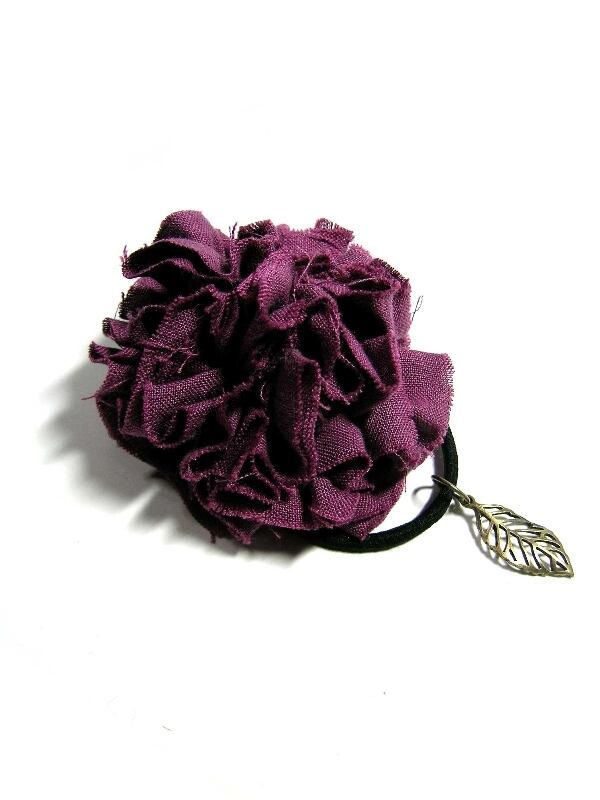 リネン お花ヘアゴム 紫
