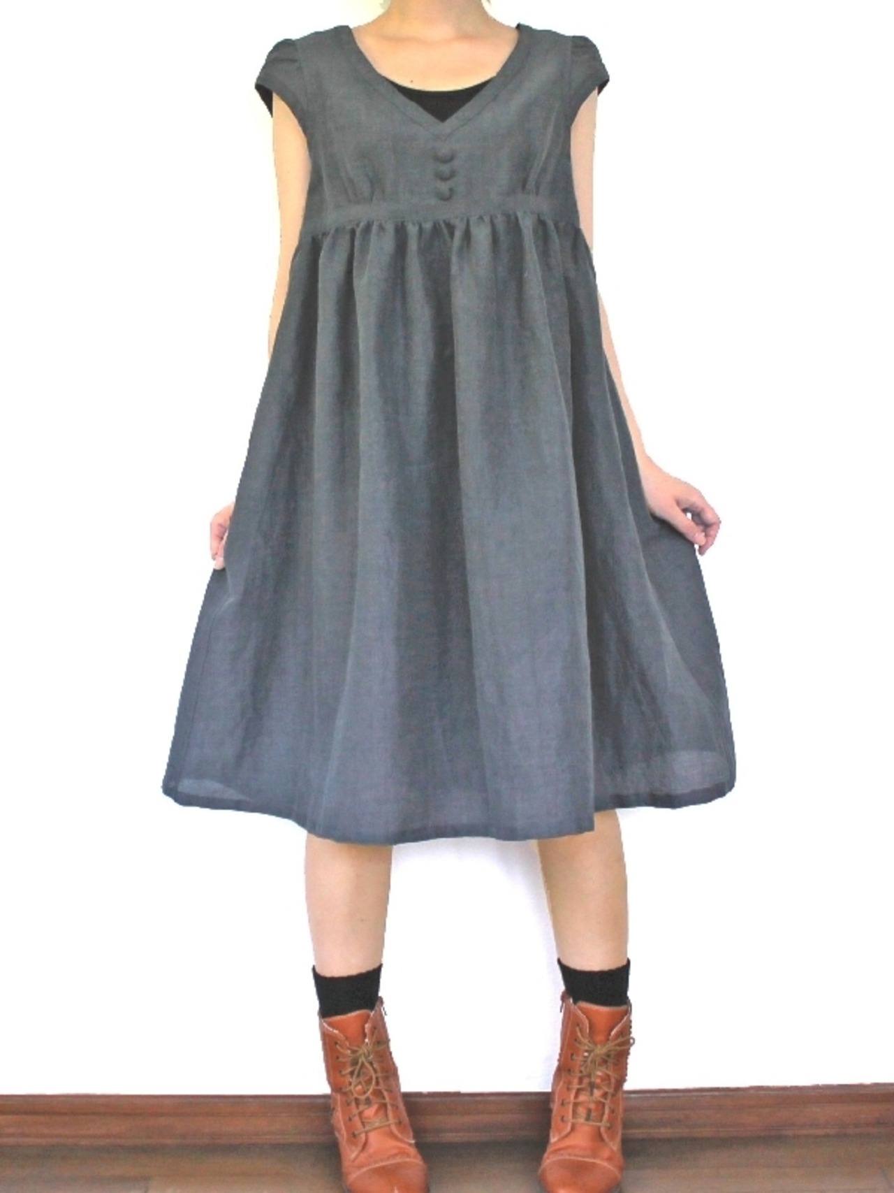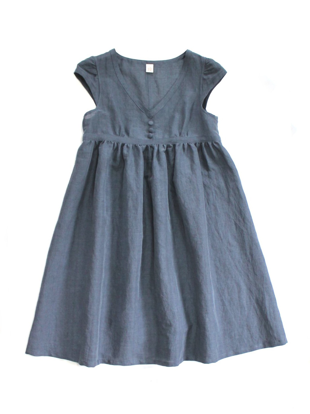 綿麻のボイル生地を使用したキャップスリーブワンピース。