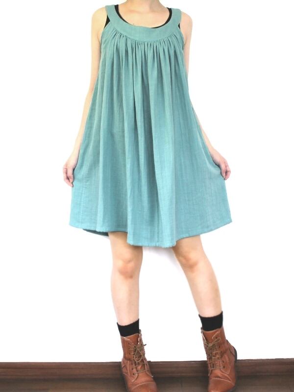 ダブルガーゼ ノースリーブギャザーワンピース 水色